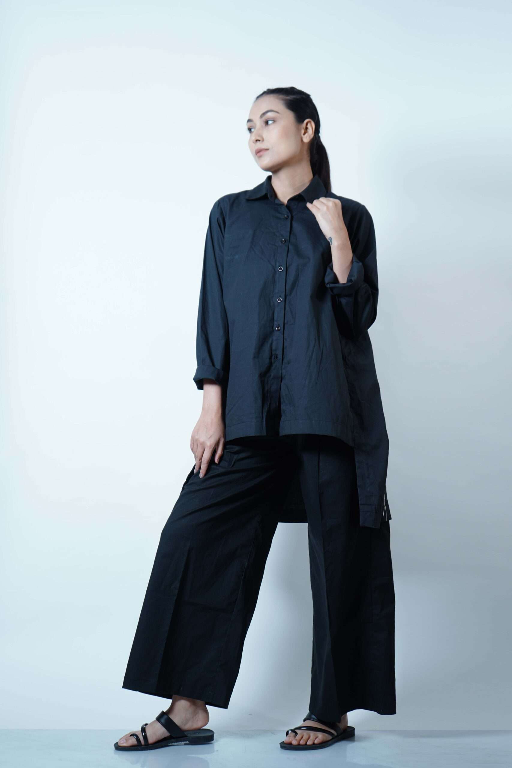 BACK GATHERED TOP-BLACK