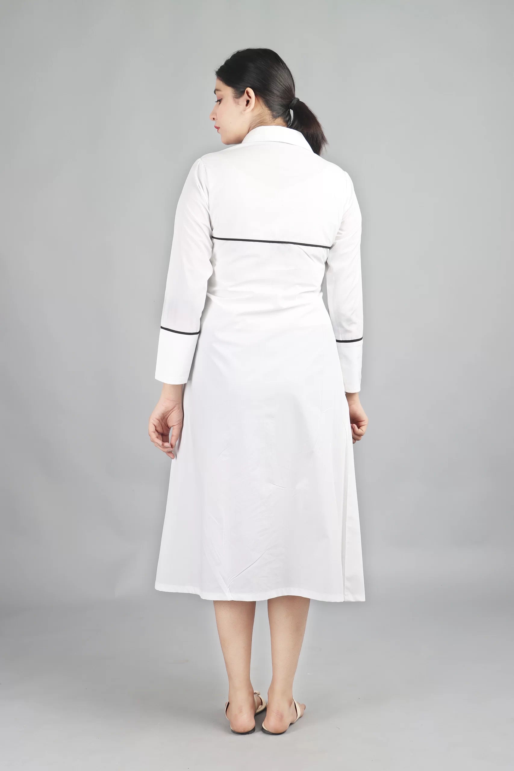 Half Pleated Dress-White