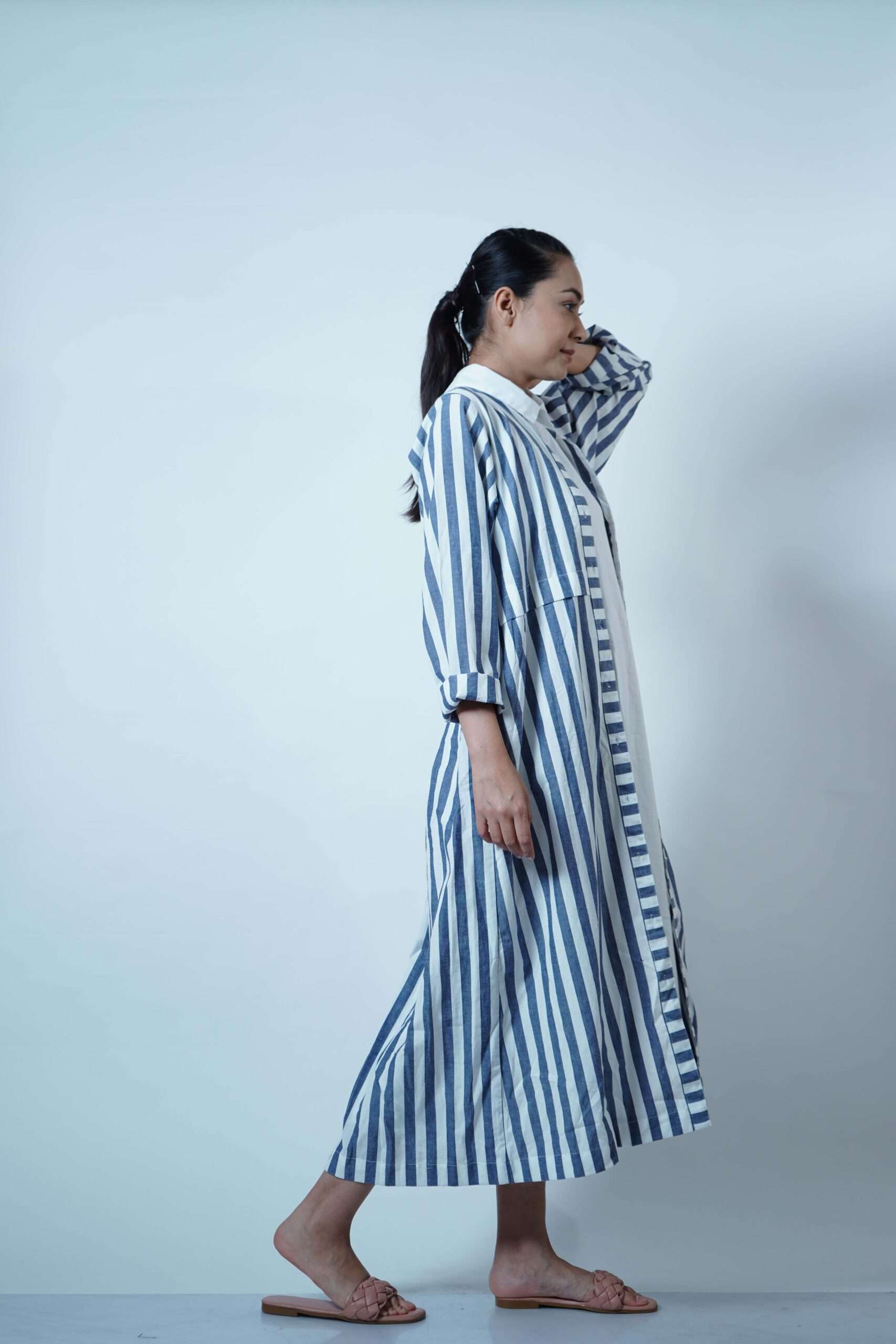 SHIRT COLLAR PLEATED OVERLAY- BLUE STRIPE
