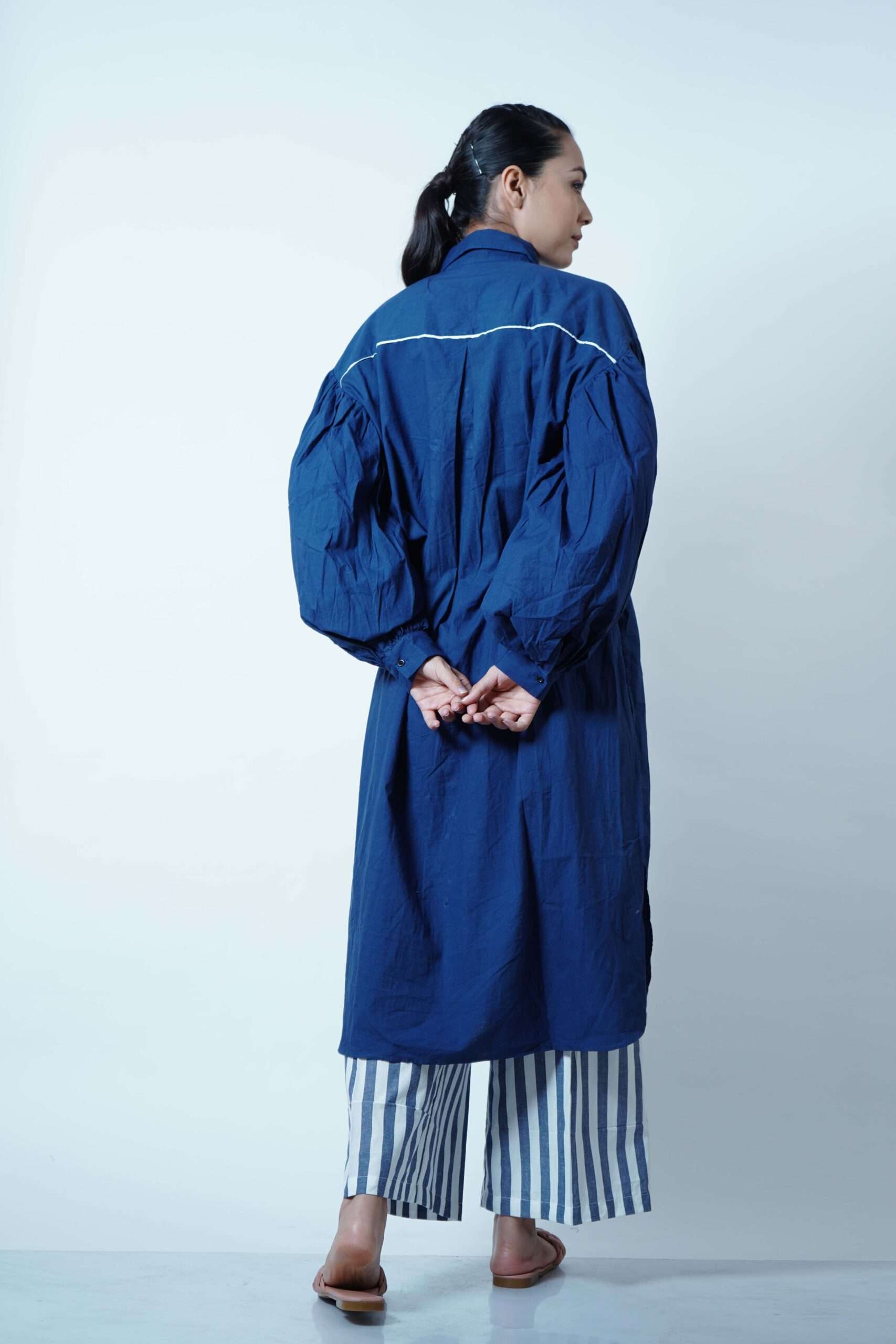 SLEEVE GATHERED SHORT TUNIC- BLUE